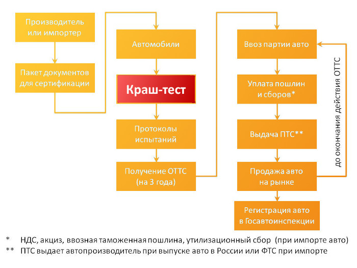 Если новый автомобиль успешно проходит сертификацию, производитель получает ОТТС, в котором делается соответствующая запись об исправности ЭРА-ГЛОНАСС. После этого транспортное средство, прошедшее все необходимые проверки и тесты, может выпускаться на рынок страны. ОТТС также позволяет получить ПТС.