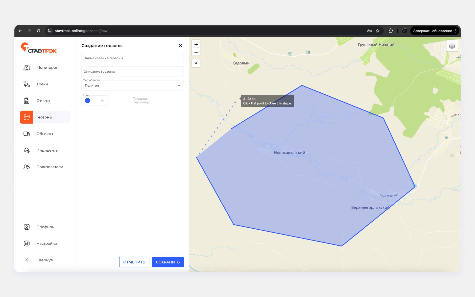 Контроль нахождения транспорта на объекте (к примеру, если ТС покидает участок строительства,