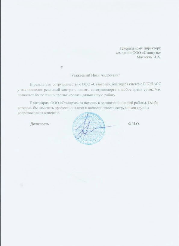 С удовольствием рекомендую компанию «Ставтрэк»! Уже не первый год пользуюсь их системой мониторинга транспорта и контролем расхода топлива. Замечательное обслуживание и точность данных значительно оптимизировали работу нашего автопарка. Спасибо команде профессионалов!