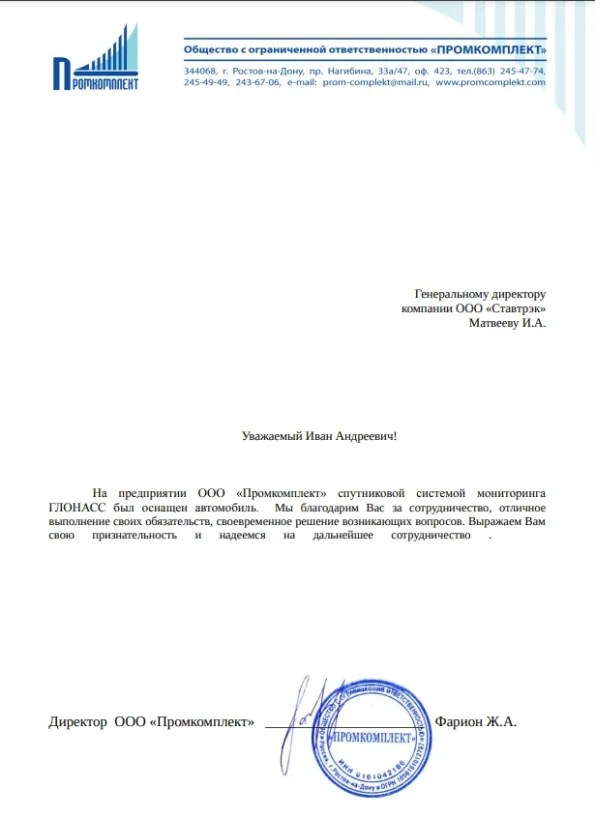 С удовольствием рекомендую компанию «Ставтрэк»! Уже не первый год пользуюсь их системой мониторинга транспорта и контролем расхода топлива. Замечательное обслуживание и точность данных значительно оптимизировали работу нашего автопарка. Спасибо команде профессионалов!