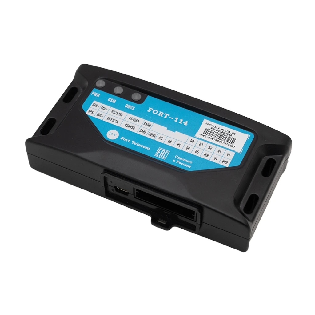 Терминал FORT-114 предназначен для мониторинга и удалённого управления транспортными средствами. Благодаря наличию Bluetooth, FORT-114 поддерживает работу с беспроводными датчиками, в том числе ДУТы, а в некоторых случаях даже некоторые проводные модели можно удалённо настраивать. Встроенный CAN-сканнер, AlgorithmiX lite, улучшенная защита по питанию, 2 слота под SIM, RS-232, RS-485, 2 выхода, встроенный зуммер, улучшенные аналоговые входы. Список поддерживаемых беспроводных датчиков уровня топлива постоянно пополняется.