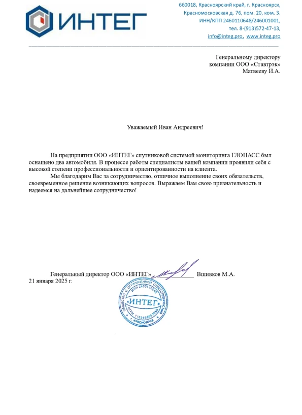 Данная система служит для обеспечения транспортной безопасности, согласно подпункта 12 п.6 «Требований по обеспечению транспортной безопасности, в том числе требований к антитеррористической защищённости объектов (территорий), учитывающих уровни безопасности для различных категорий объектов транспортной инфраструктуры и транспортных средств автомобильного и городского наземного электрического транспорта», утвержденных Постановлением Правительства РФ №924 от 14.09.2016г. И полностью соответствует Федеральному закону от 09.02.2007 N 16-ФЗ “О транспортной безопасности” (с изм. и доп.)