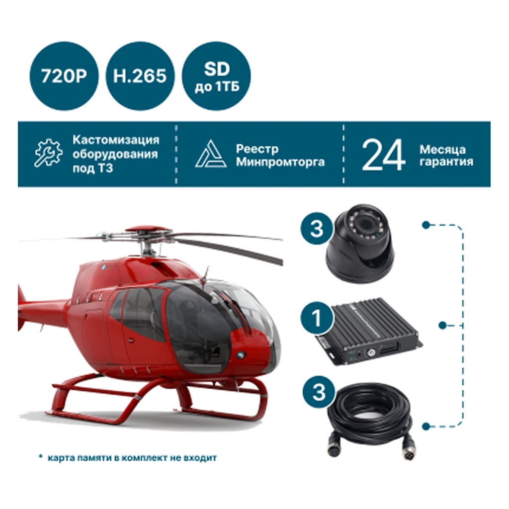 Комплект видеонаблюдения для воздушного транспорта на 3 камеры