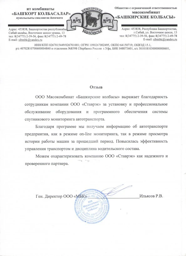 Хотим поблагодарить компанию «Ставтрэк» за профессиональную установку и обслуживание оборудования для спутникового слежения. Благодаря внедрённой программе мы получили удобный онлайн-доступ к мониторингу автотранспорта, что значительно улучшило контроль и дисциплину наших водителей. Рекомендуем «Ставтрэк» как ответственного и надёжного партнёра.