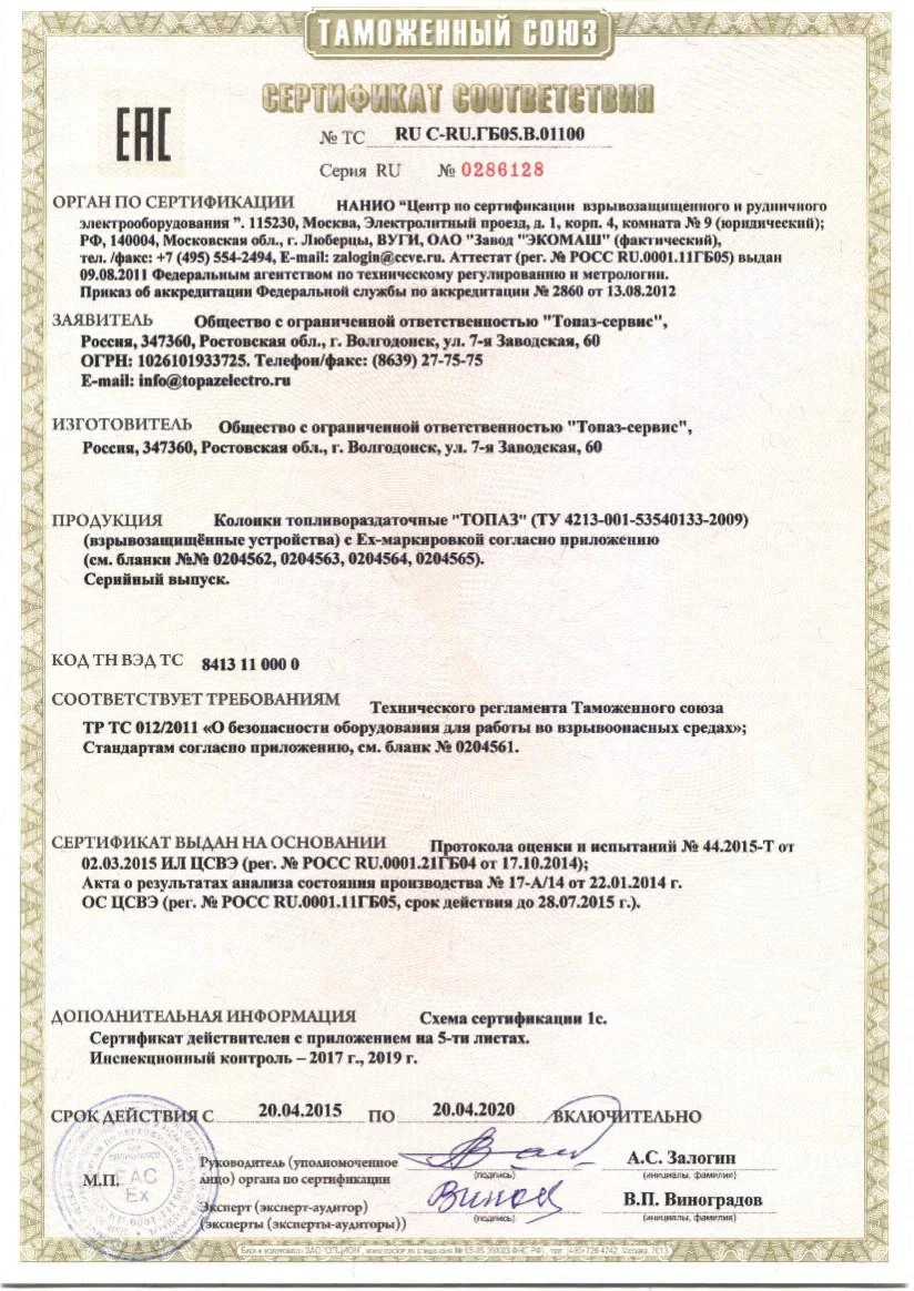 Технического регламента Таможенного союза «О безопасности оборудования для работы во взрывоопасных средах» (ТР ТС 012/2011), «Правилами устройства электроустановок» (ПУЭгл.7.3) и другими нормативно-техническими документами, определяющими применяемость электрооборудования во взрывоопасных средах.