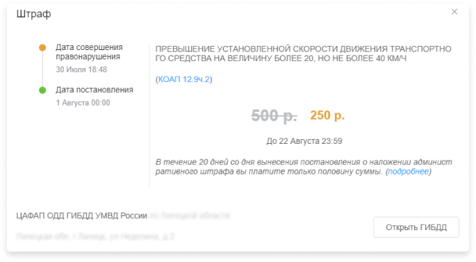 Вид штрафной карточки ГИБДД в программе "ЗАВГАР ОНЛАЙН"